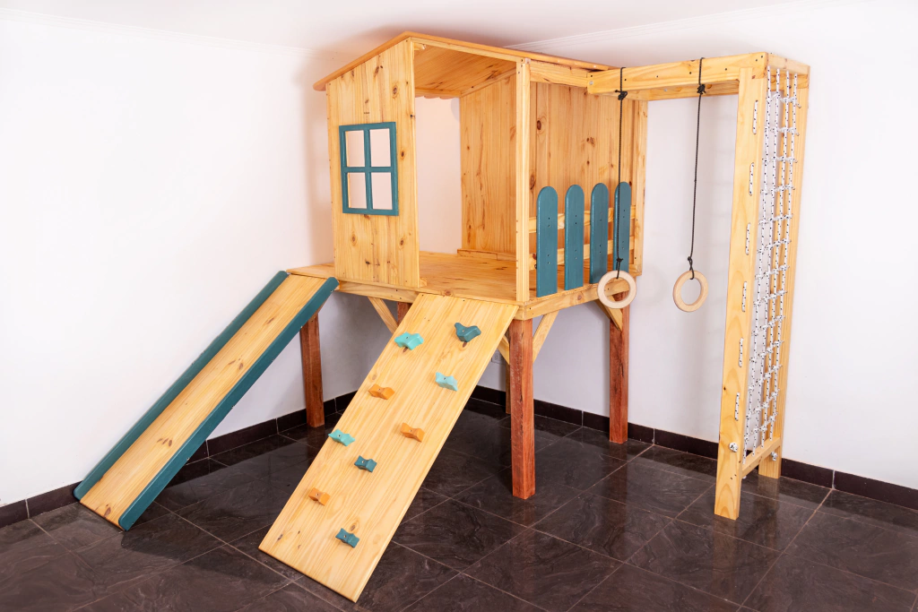 Estás a un paso de crear un lugar soñado para tu peque. La casita gimnasio tiene TODO lo que necesita para descargar energía y divertirse!
