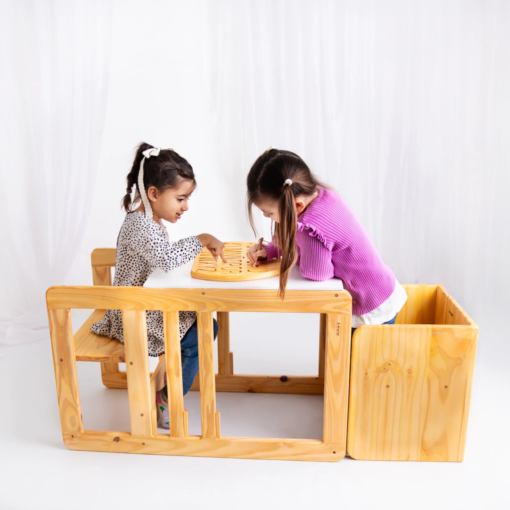 Y LO MEJOR ¡también es mesa y sillita! Ideal para cuando quieren comer, dibujar, o jugar en un espacio propio mientras vos aprovechás a hacer otra cosa